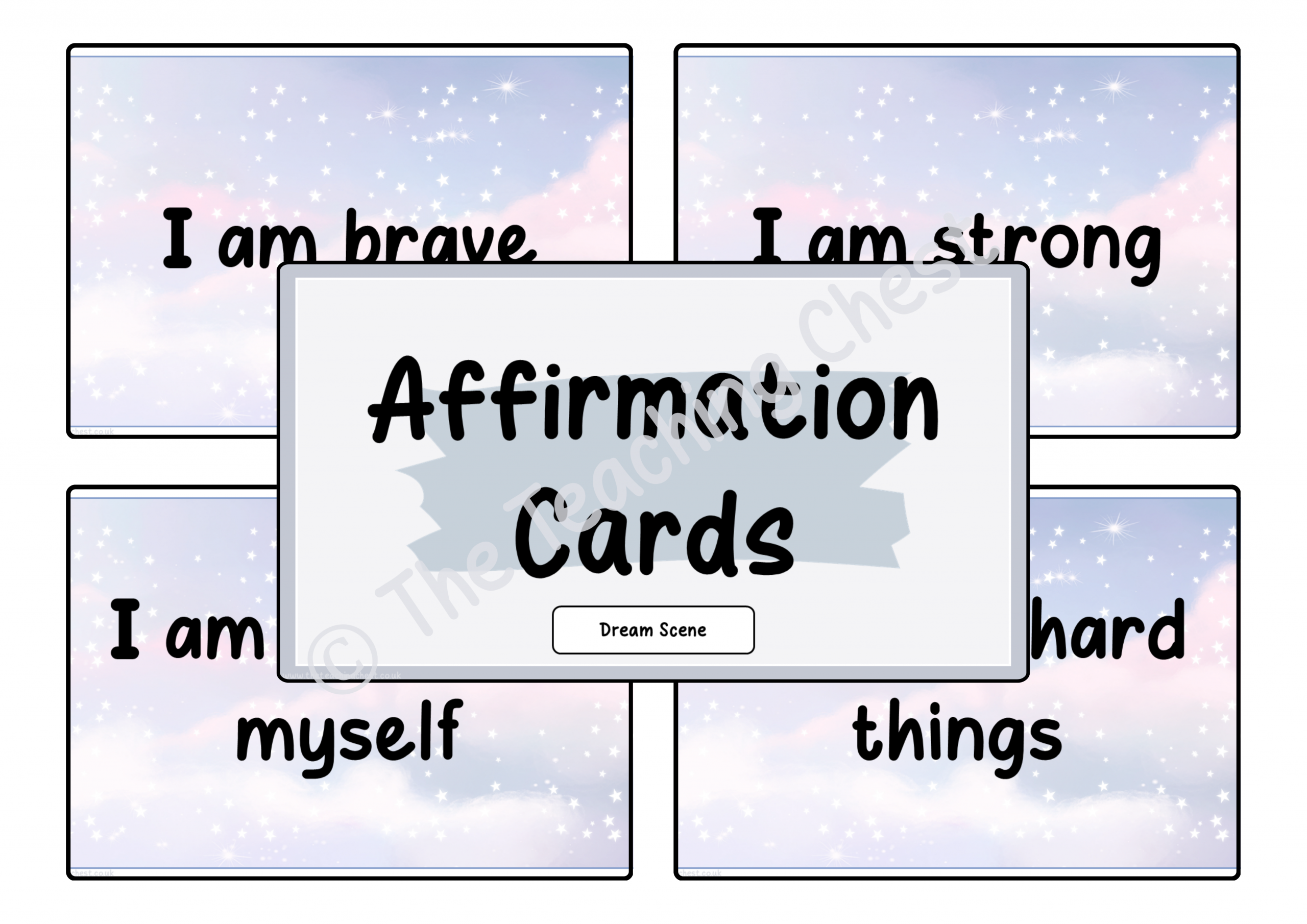 The resource contains 64 slides, each containing a simple, clear statement that learners can use as part of their daily routine.  Each card is presented in calming tones and patterns with thoughtful wording, making them suitable for children of all ages.
