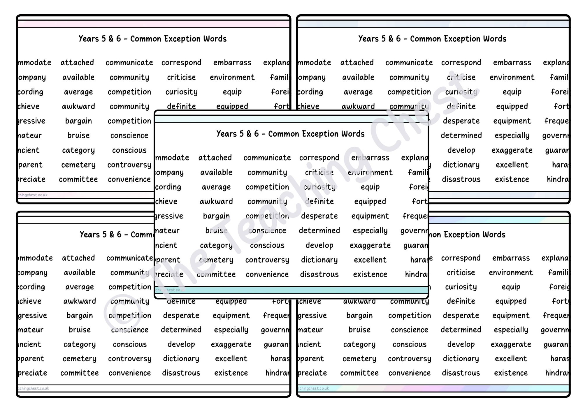 Common Exception Word mats are a compact and concise way to provide learners with a clear list of the words in the English National Curriculum that they should be able to read and spell by the end of the year.
