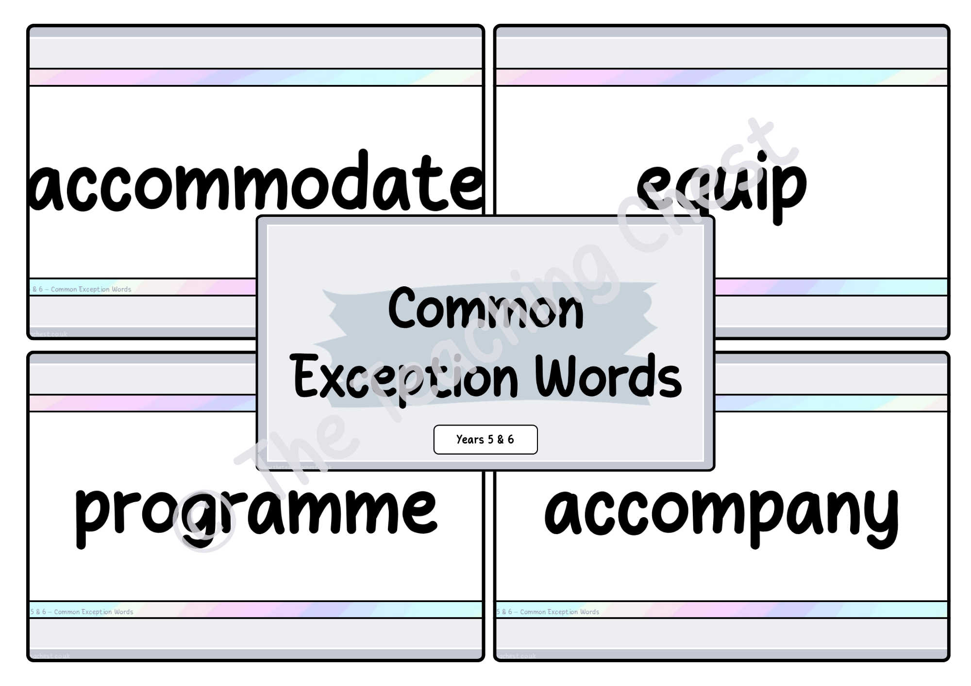 A set of flashcards displaying the common exception words for Years 5 & 6 for quick-fire reading and spelling practice.