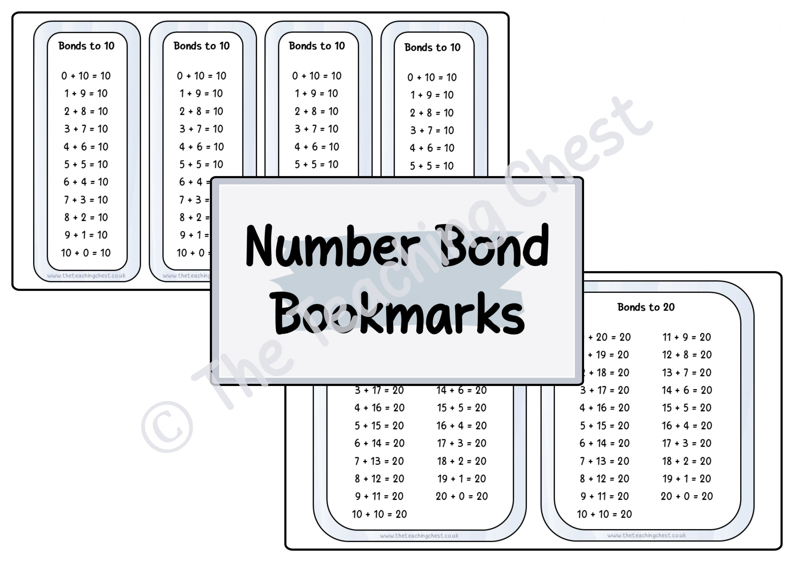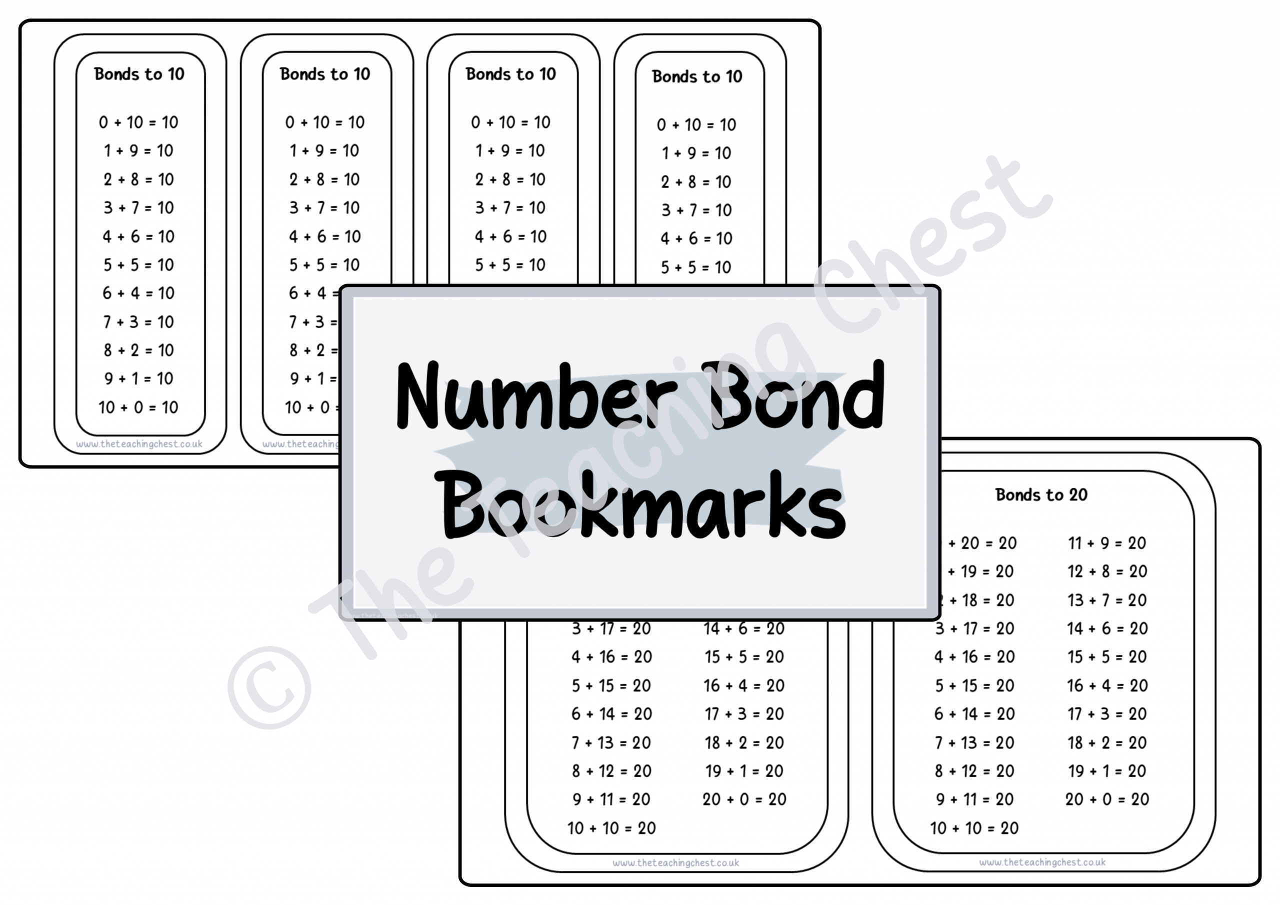 The Number Bond Bookmarks give learners a quick and accessible way to practise number facts which aid with mental recall of addition and subtraction calculations They are compact and easy to attach to a desk or store in a book.