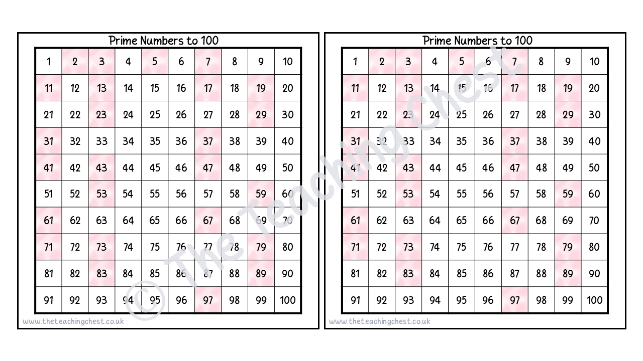 Number Square – Prime Numbers (Pink Marble)