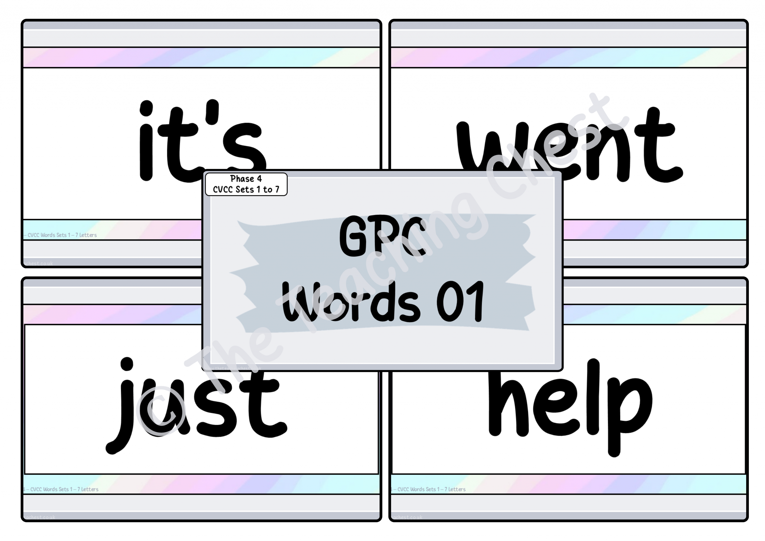 The GPC Flashcards are words taken directly from Letters and Sounds and are designed to support the development of blending within Phase 4.