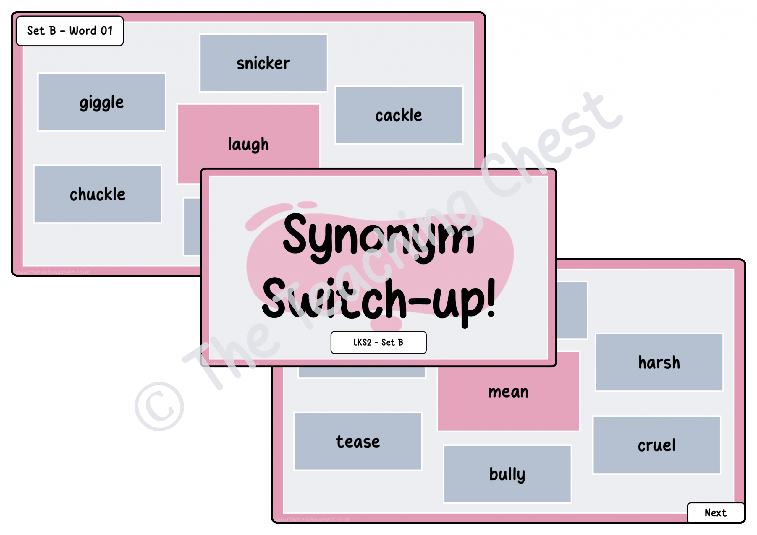 Synonym Switch-Up exposes pupils to alternative words with similar meanings, helping them to explore and apply synonyms in context.