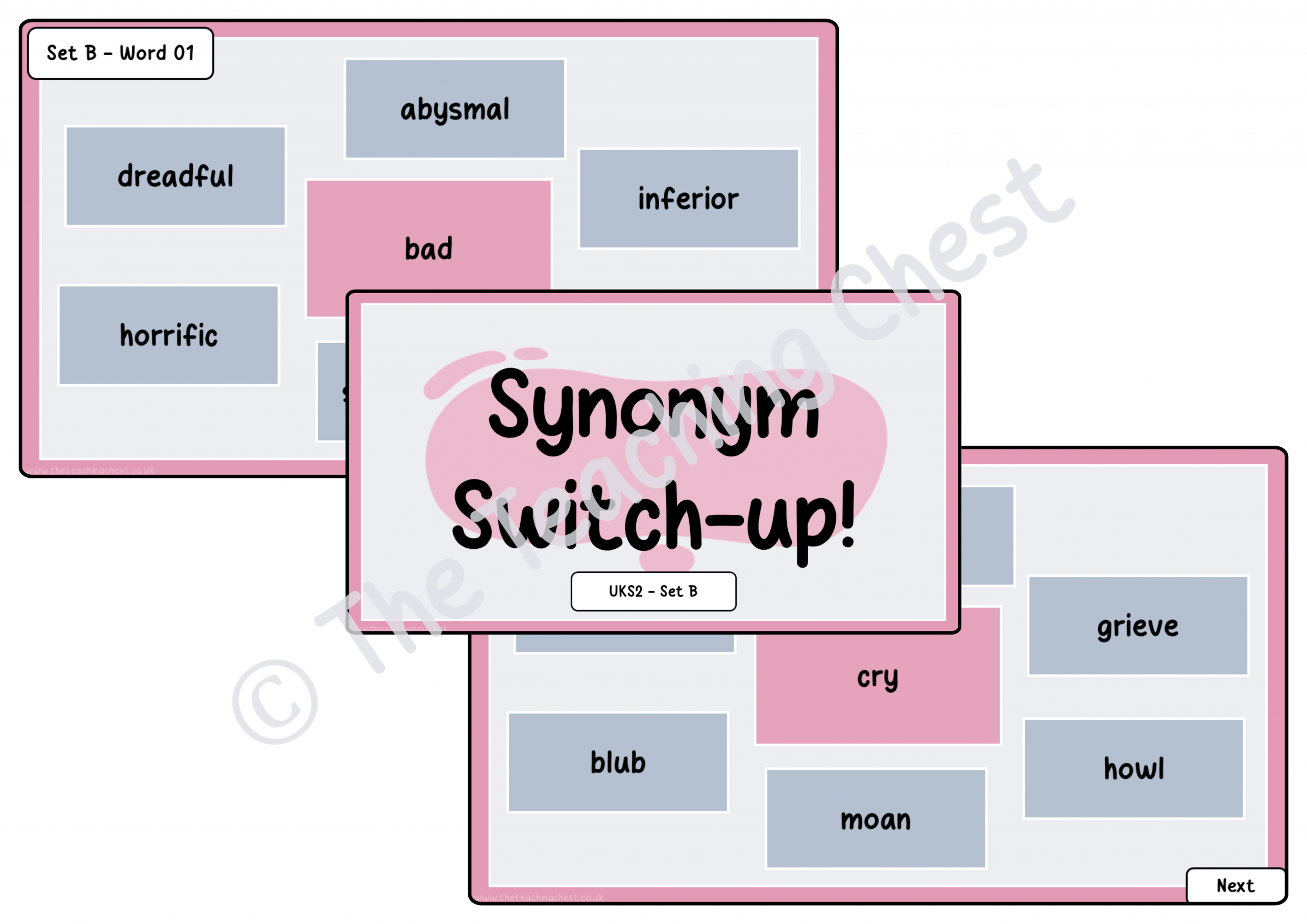Synonym Switch-Up is a digital resource designed to broaden learners’ vocabulary and encourage more varied word choices in spoken and written work. The resource exposes pupils to alternative words with similar meanings, helping them to explore and apply synonyms in context.