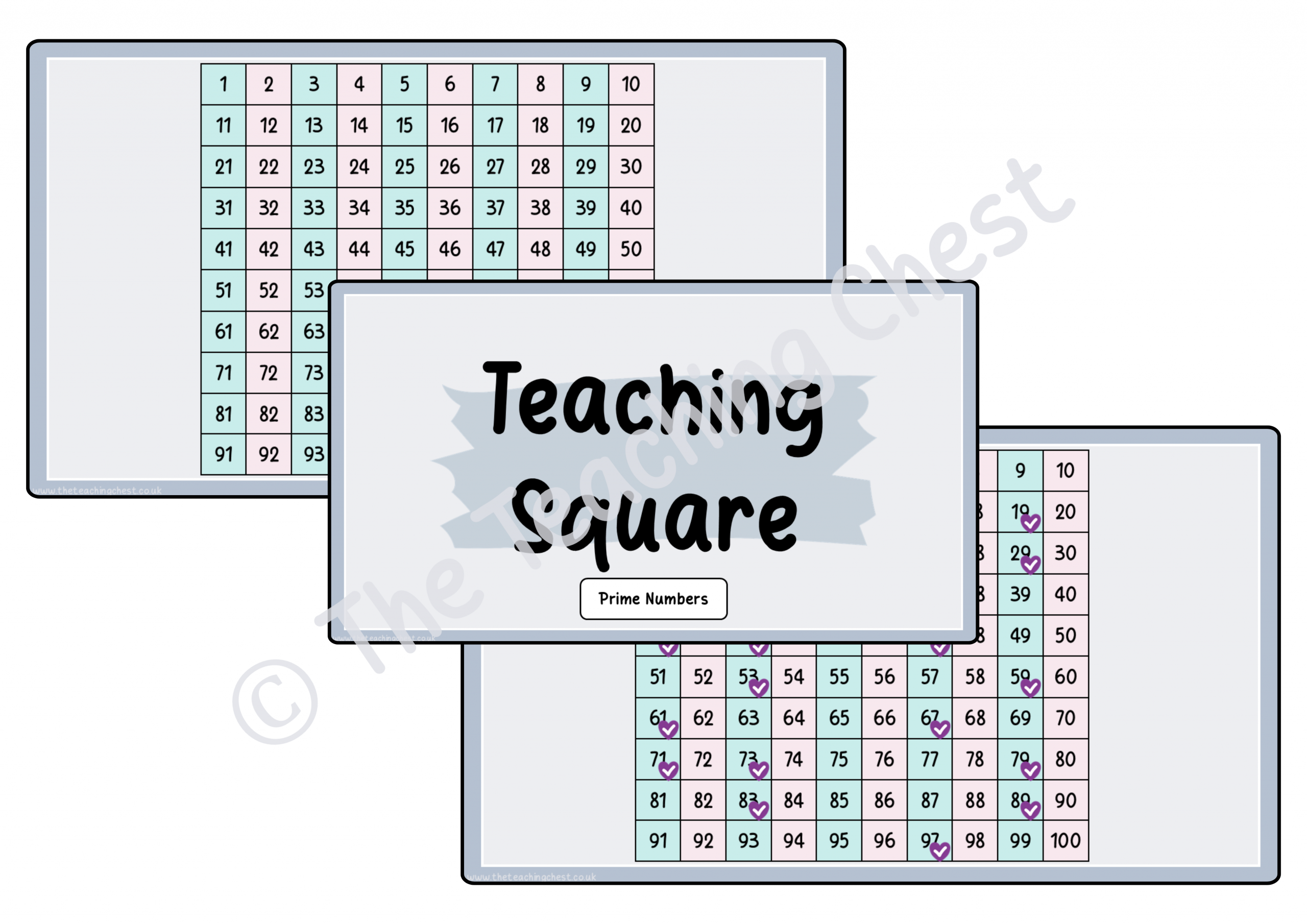 The digital teaching square is an interactive whiteboard resource designed to support pupils in becoming familiar with prime numbers.