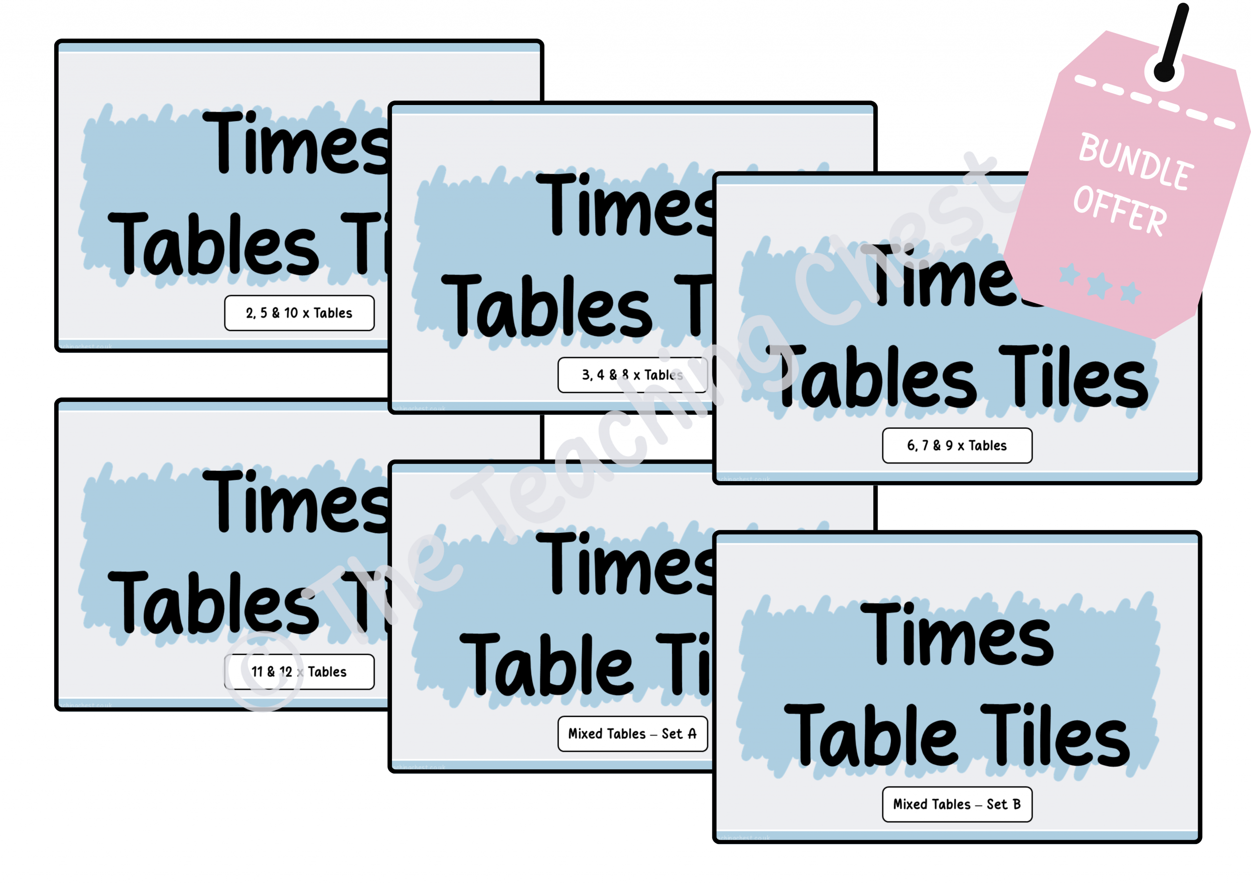 Times Tables Tiles is a bundle of 18 individual resources for all times tables from 1x to 12x.